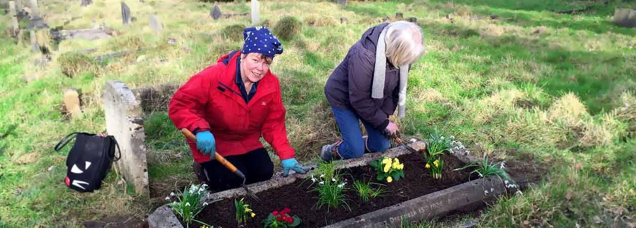 Volunteers and groups who are already helping in this way get tremendous satisfaction from their work. Tending a grave is a great way to get out in the open air and enjoy this tranquil space, and to conserve our beautiful local heritage. There are 1,200 graves with kerbs or headstones in the Cemetery which need your tender loving care!